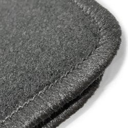 Reverso antideslizante: El reverso antideslizante proporciona mayor seguridad, evitando que las alfombrillas se muevan, mientras el ribete en color gris oscuro y emblema bordados en velour añaden un toque de estilo y elegancia.