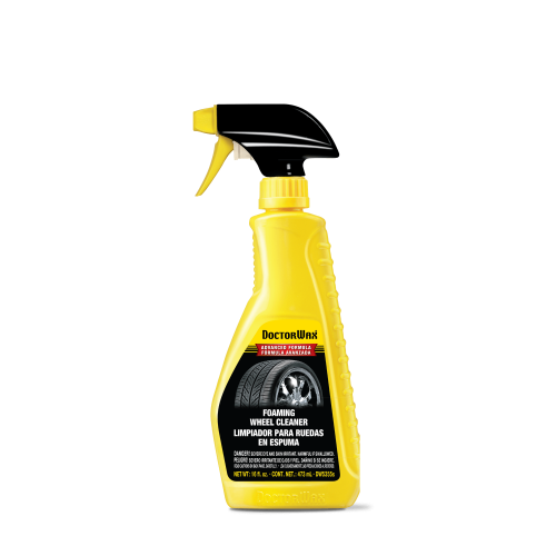 El limpiador de ruedas en espuma de DoctorWax® elimina fácilmente el barro, el óxido, la sal y el polvo de los frenos de las ruedas, incluidos las partes de cromo y el enchapado cromado.