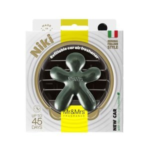 Niki es un ambientador de coche con pasión por la moda y adaptable a todo tipo de vehículos. La parte trasera incluye una recarga de EVA intercambiable con una de las fragancias disponibles. Fabricado en Italia. Diseñado por Luca Trazzi. Por fin, un ambientador de coche que puedes presumir ante todos. Cada Niki tiene una fragancia específica que lo caracteriza.